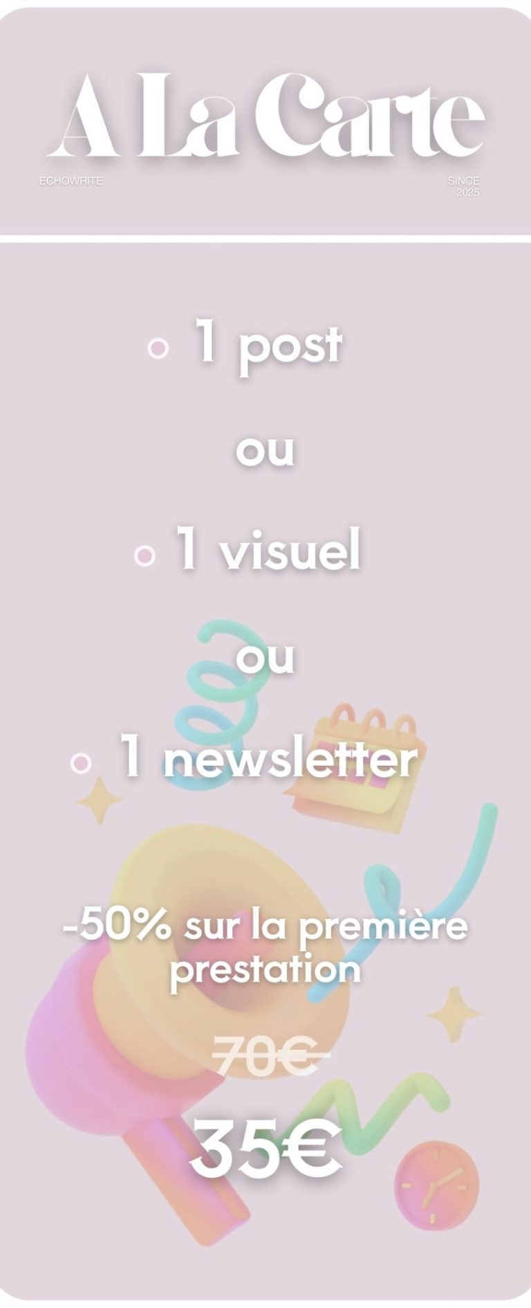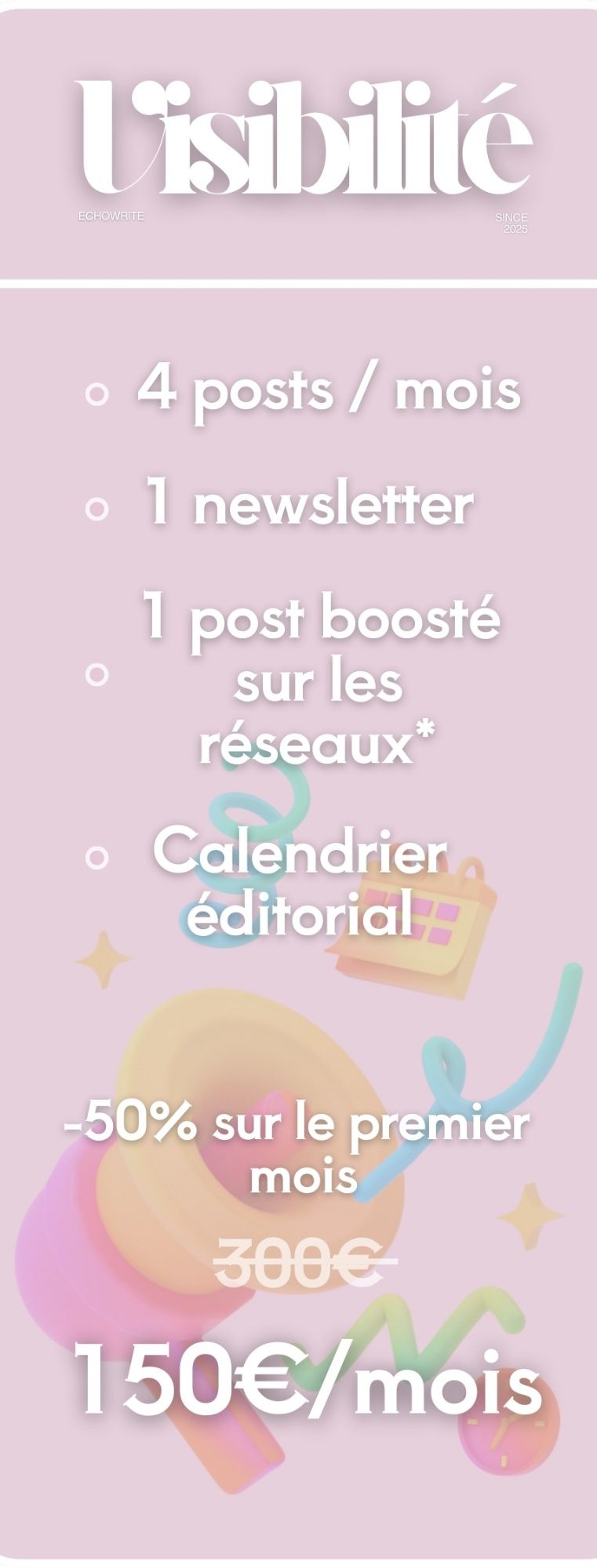 Cette offre est conçue pour les entrepreneurs et entreprises qui veulent des contenus clairs, pros et alignés avec leur activité.